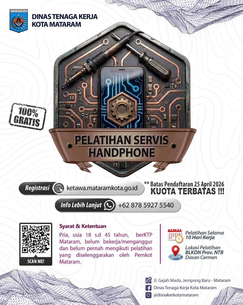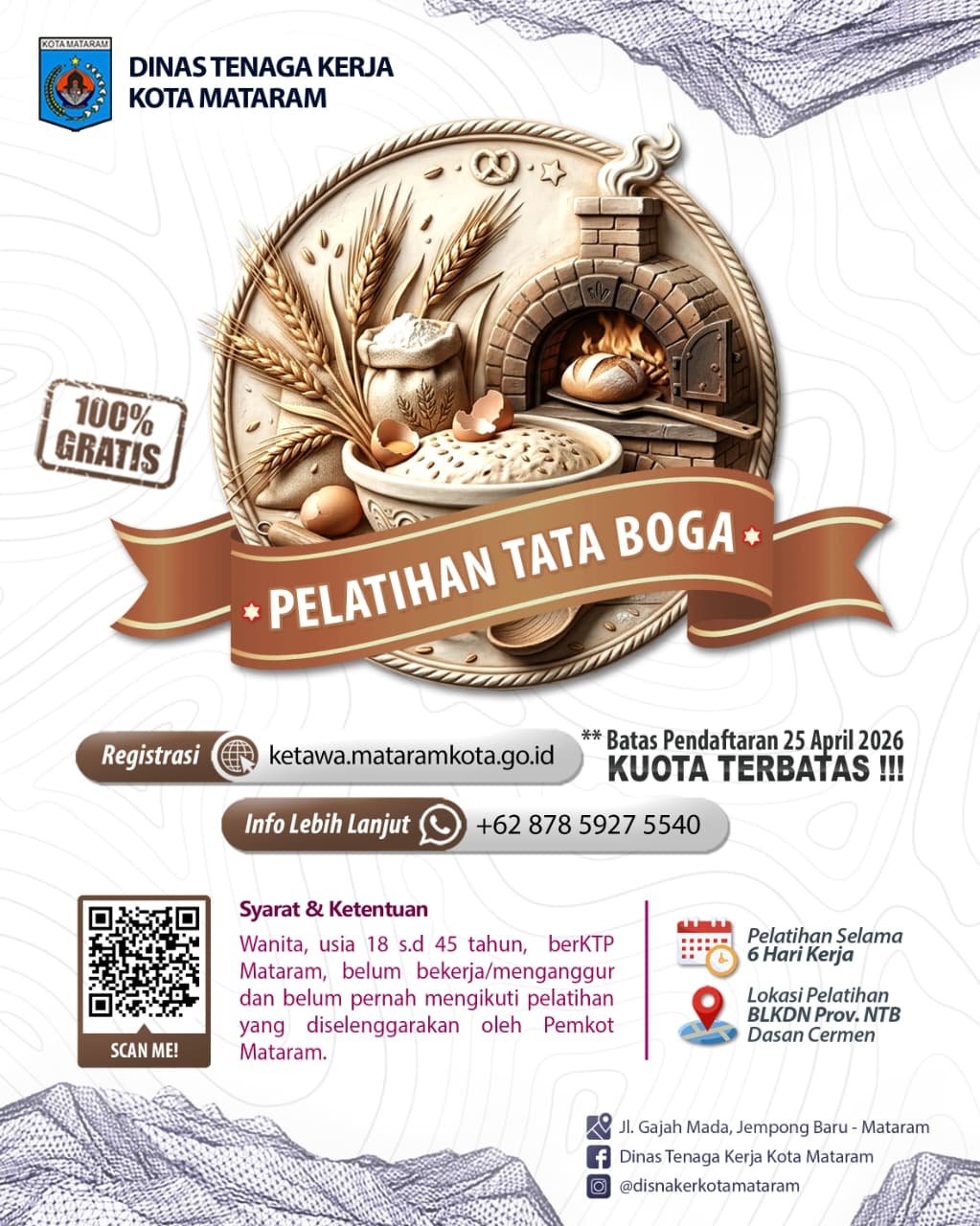 Berikut ini merupakan pelatihan kerja yang akan dilaksanakan oleh OPD Pemprov Kota Mataram